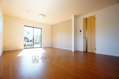 大きな窓のあるリビングは、陽光あふれる明るい空間です。居心地良く、ご家族皆がゆったり寛げる憩いの空間となりそうです。