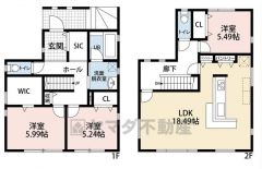 通行人から覗かれにくい2階リビングは18帖とゆったり。加えて3面採光を確保しているので明るいです^^収納箇所も多く、荷物の多い世帯も安心です。