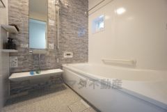 1日の疲れを癒すくつろぎのバスルーム。足を伸ばしてもゆったりと入れるサイズです。お子様と一緒にお風呂に入っても狭くないですね^^