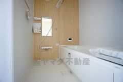 浴室暖房乾燥機付き。天候に左右されず、いつでも好きなときに洗濯物を干せるので、仕事や家事で忙しい方に重宝します。