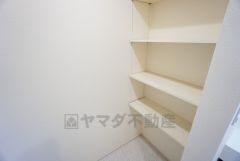 便利な洗面室収納。散らかりがちなバスタオルや清掃用品、化粧品や予備のシャンプー等もきれいに整頓できますね。