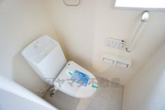 温水洗浄機付トイレです。節水機能もあるので、安心して使えますね。もちろん、1階2階の2ヶ所にトイレがあるので、忙しい朝にもゆとりができますね。