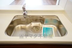 広々とした凸型シンクに洗剤ポケットを標準装備。大きなお鍋など洗いやすいです。