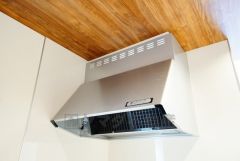 風量が弱・強と切替え可能なレンジフードが調理中の煙をしっかり吸い込みます。手元を照らすライト付きです。