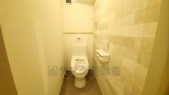 温水洗浄機付トイレです。節水機能もあるので、安心して使えますね。もちろん、1階2階の2ヶ所にトイレがあるので、忙しい朝にもゆとりができますね。