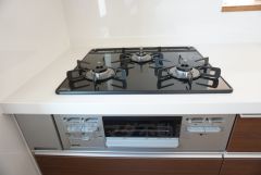 同仕様写真。複数の調理を一度に行うことができる3口コンロ。効率よくお料理が出来ます。毎日のお料理も楽しくなりますね^^
