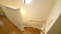 小さなお子様やご高齢の方でも安心できる、手すり付き階段。段差も低めで設定されており、安全性にも優れています。