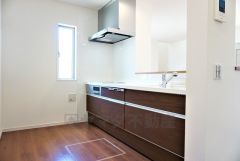 同仕様写真。対面式カウンターキッチンからはお子様の様子が見守れます。ダイニングへの配膳や調理の時便利なカウンター付き。