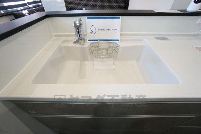 色も形もキレイなシンクは、広さも確保しているので、大きめの鍋も簡単に洗えます。