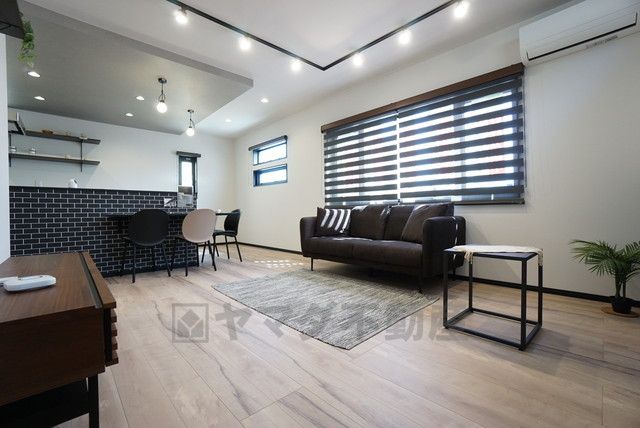 大きな窓のあるリビングは、陽光あふれる明るい空間です。居心地良く、ご家族皆がゆったり寛げる憩いの空間となりそうです。