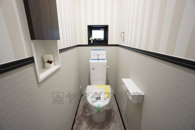 温水洗浄機付トイレです。節水機能もあるので、安心して使えますね。もちろん、1階2階の2ヶ所にトイレがあるので、忙しい朝にもゆとりができますね。