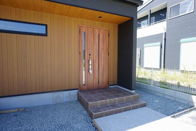 家の顔となる玄関扉がかっこいいと、たくさんの人を招き入れたくなりますね^^奥まって設置されており、雨にも濡れにくくなっています。