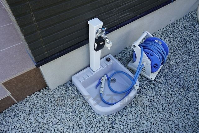 お庭に外水栓付き。庭掃除や植物への水やり、お子様用のプールなど大活躍すること間違いなし。