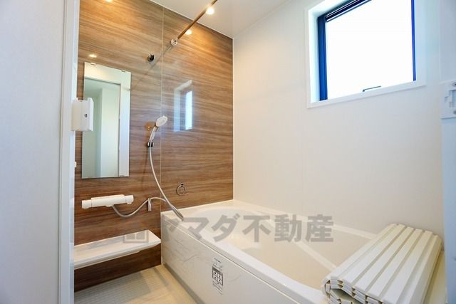 1日の疲れを癒すくつろぎのバスルーム。足を伸ばしてもゆったりと入れるサイズです。お子様と一緒にお風呂に入っても狭くないですね^^