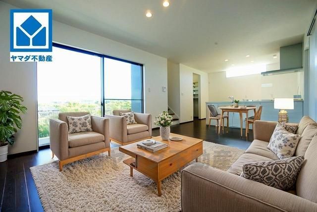 家具はイメージです。大きな窓のあるリビングは、陽光あふれる明るい空間です。居心地良く、ご家族皆がゆったり寛げる憩いの空間となりそうです。