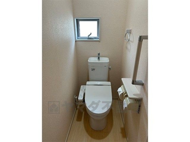 温水洗浄機付トイレです。節水機能もあるので、安心して使えますね。もちろん、1階2階の2ヶ所にトイレがあるので、忙しい朝にもゆとりができますね。