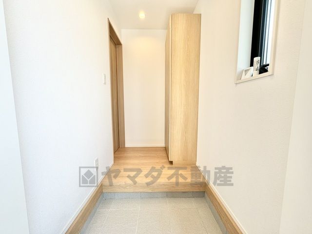 採光も考えられた明るい玄関です。たっぷり収納できるシューズボックス付きなので、家族全員の靴がきれいに整頓できます。