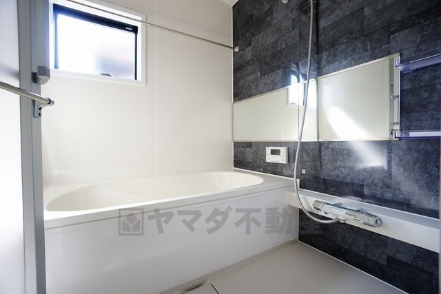 1日の疲れを癒すくつろぎのバスルーム。足を伸ばしてもゆったりと入れるサイズです。お子様と一緒にお風呂に入っても狭くないですね^^