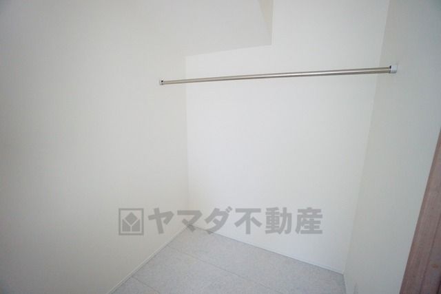 洗面所にはハンガーパイプ付の収納スペースを完備しています。