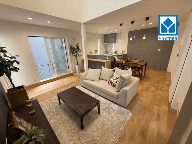大きな窓のあるリビングは、陽光あふれる明るい空間です。居心地良く、ご家族皆がゆったり寛げる憩いの空間となりそうです。