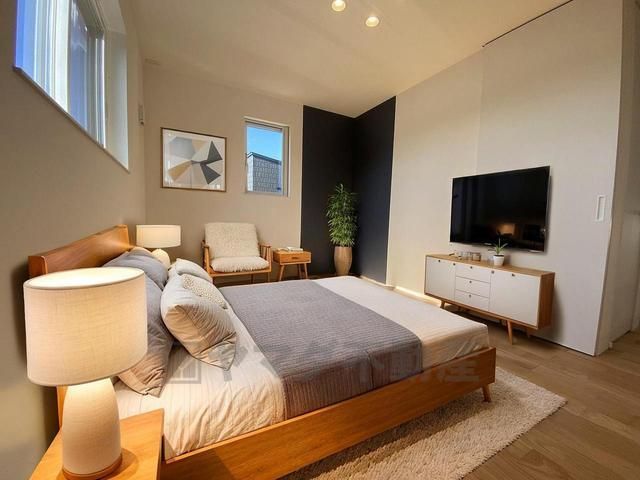 家具はイメージです。2面採光を確保した明るい室内は、風通しも良く、大変居心地の良い空間となっております。爽やかな風を感じて起きる朝は、快適生活の始まりに。