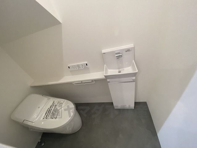 温水洗浄機付トイレです。節水機能もあるので、安心して使えますね。もちろん、1階2階の2ヶ所にトイレがあるので、忙しい朝にもゆとりができますね。