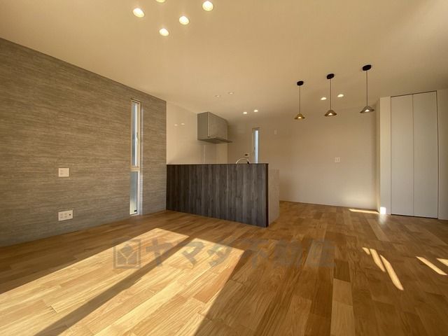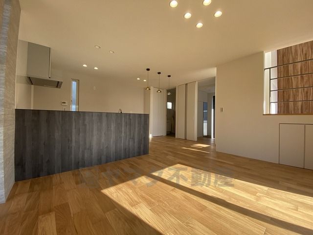 大きな窓のあるリビングは、陽光あふれる明るい空間です。居心地良く、ご家族皆がゆったり寛げる憩いの空間となりそうです。