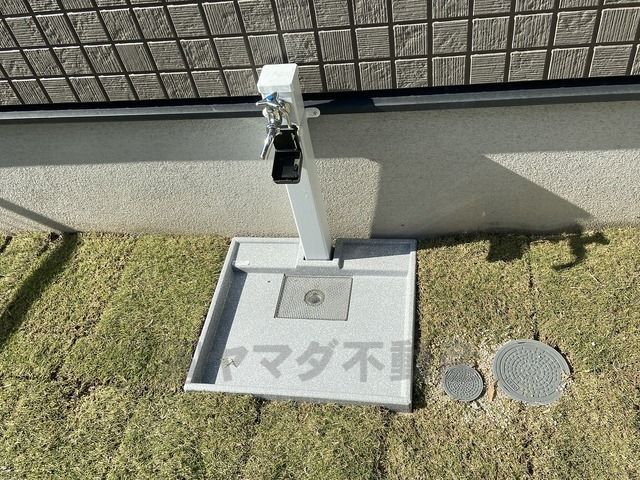 外水栓付き。庭掃除や植物への水やり、お子様用のプールなど大活躍すること間違いなし。ペットを飼われているご家族様にもオススメです^^