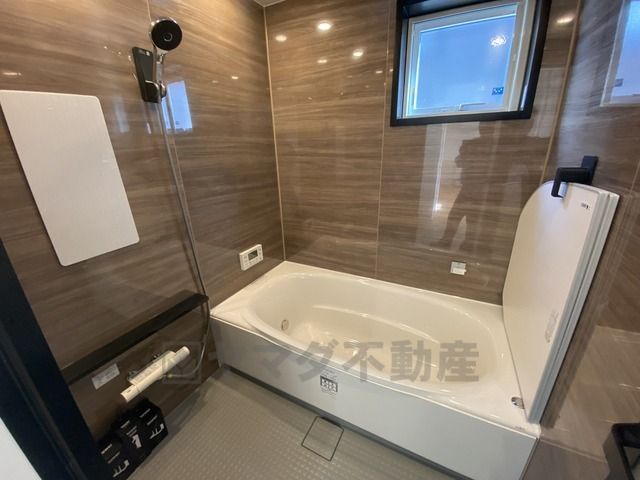 1日の疲れを癒すくつろぎのバスルーム。足を伸ばしてもゆったりと入れるサイズです。お子様と一緒にお風呂に入っても狭くないですね^^