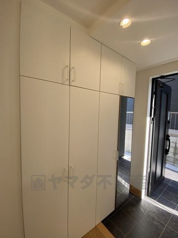 壁一面に設けた大容量のシューズクローゼットは実用性と機能性を兼ね備えています。急な来客でも、いつも整頓された玄関でお出迎えができます。