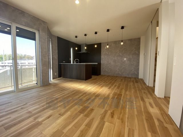 大きな窓のあるリビングは、陽光あふれる明るい空間です。居心地良く、ご家族皆がゆったり寛げる憩いの空間となりそうです。