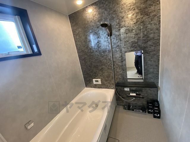 1日の疲れを癒すくつろぎのバスルーム。足を伸ばしてもゆったりと入れるサイズです。お子様と一緒にお風呂に入っても狭くないですね^^