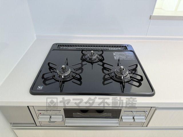 同時にたくさんの料理が調理できる3口コンロ。長時間熱を通しておきたい煮込み料理を作りながら、炒め物など同時進行で進められます。