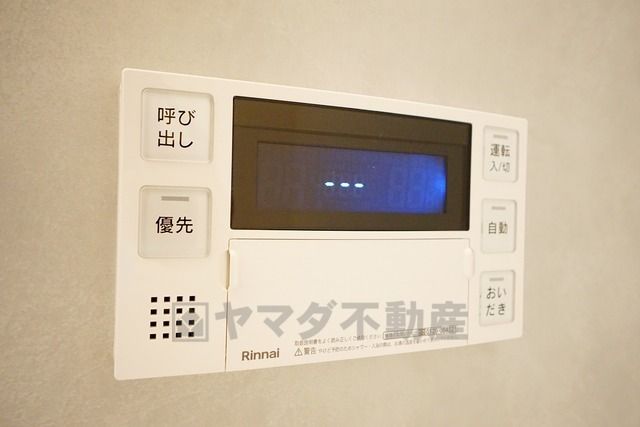 キッチン横からお湯張り、追い炊き、足し湯がボタン一つで楽々操作できる給湯機リモコンです。忙しい夕飯準備の時間帯に重宝しますね。