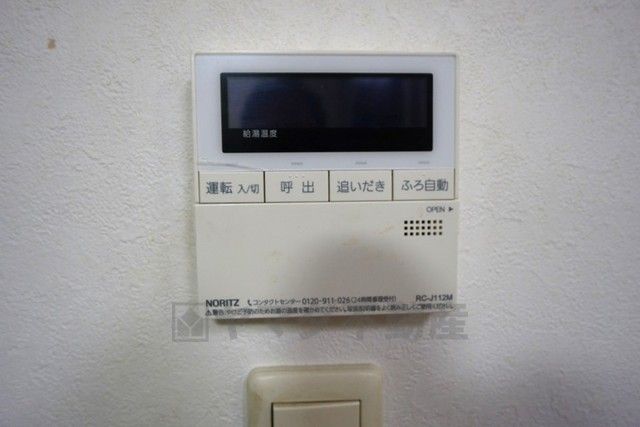 キッチン横からお湯張り、追い炊き、足し湯がボタン一つで楽々操作できる給湯機リモコンです。忙しい夕飯準備の時間帯に重宝しますね。