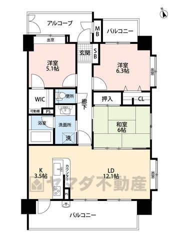 LDK15.6畳、和6畳、洋5.1畳、洋6.3畳 |
