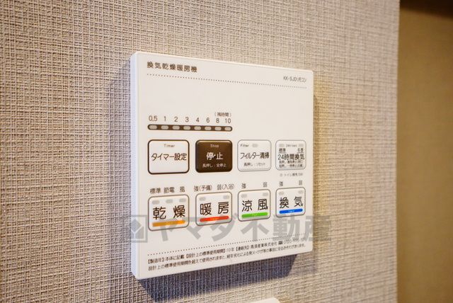 雨の日の洗濯も安心できる浴室暖房乾燥機付き浴室。リモコンで操作もボタン1つで簡単。
