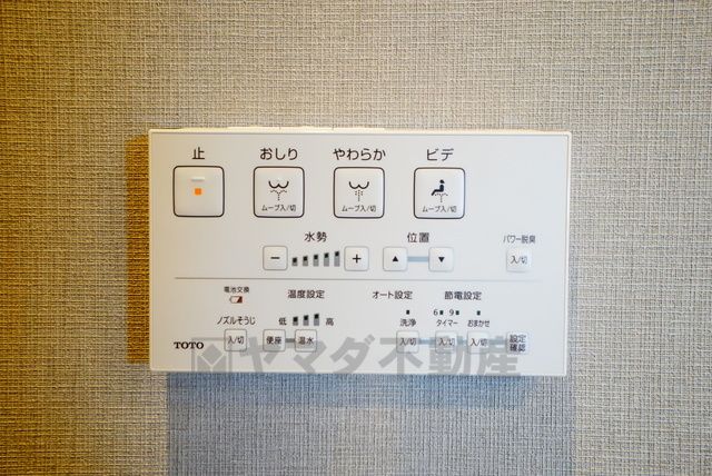 温水洗浄機付トイレです。節水機能もあるので、安心して使えますね。