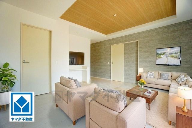家具はイメージです。大きな窓のあるリビングは、陽光あふれる明るい空間です。居心地良く、ご家族皆がゆったり寛げる憩いの空間となりそうです。