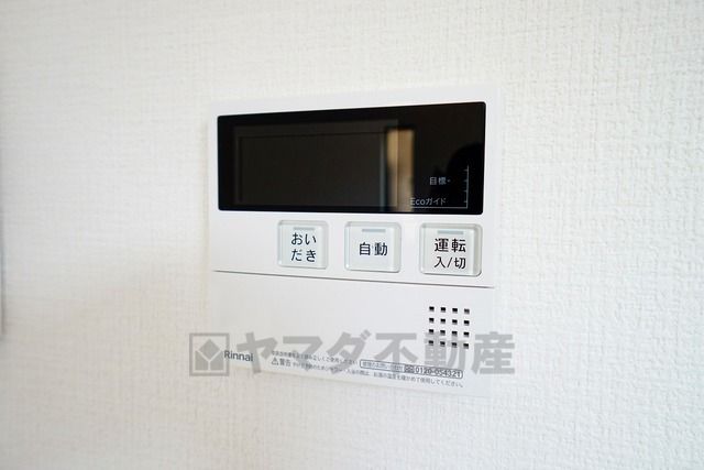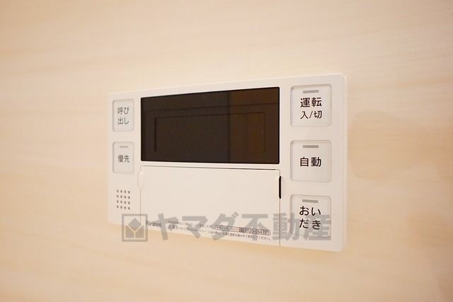 キッチン横からお湯張り、追い炊き、足し湯がボタン一つで楽々操作できる給湯機リモコンです。忙しい夕飯準備の時間帯に重宝しますね。