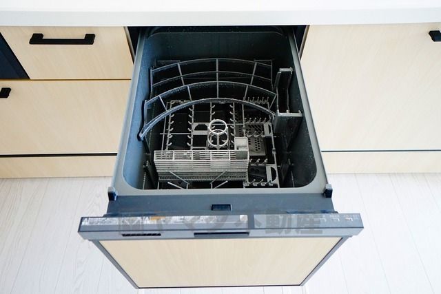 食事の後の手間を解消する食器洗い乾燥機付。冬場の洗い物で手荒れの悩みもなくなります。手洗いよりも節約できて便利。