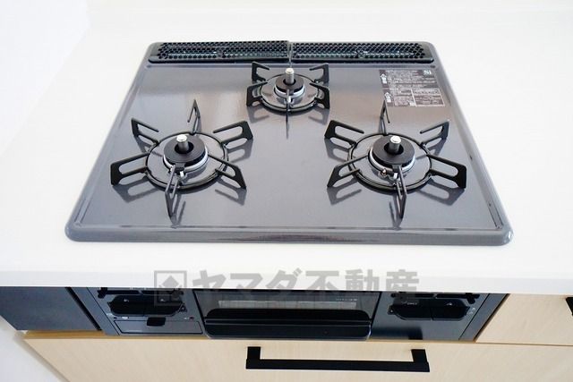 複数の調理を一度に行うことができる3口コンロ。効率よくお料理が出来ます。毎日のお料理も楽しくなりますね^^