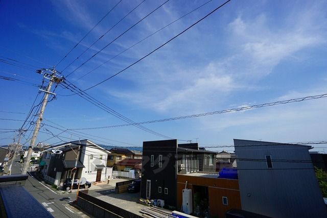 2階バルコニーからの眺望です。前面に遮るものがなく景色を一望できます。南向きで、日当たりも良好。お洗濯物が良く乾きます。
