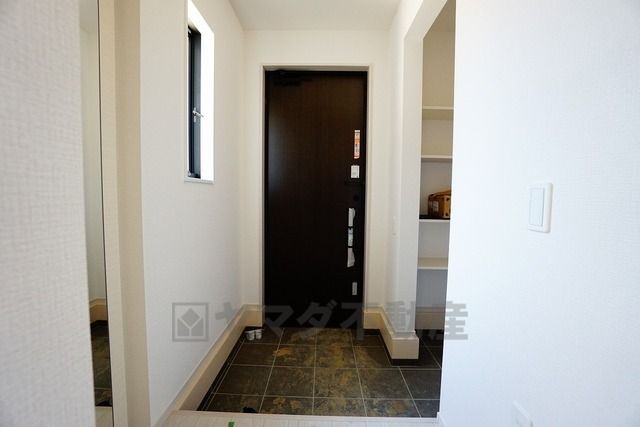 採光も考えられた明るい玄関です。全身鏡付きで、お出かけ前にコーディネートのチェックが出来ますね。