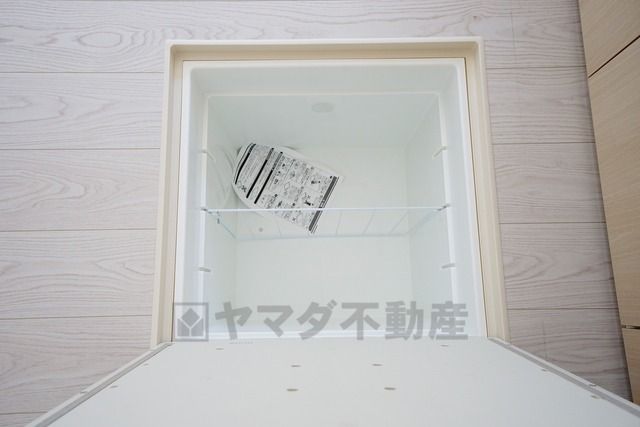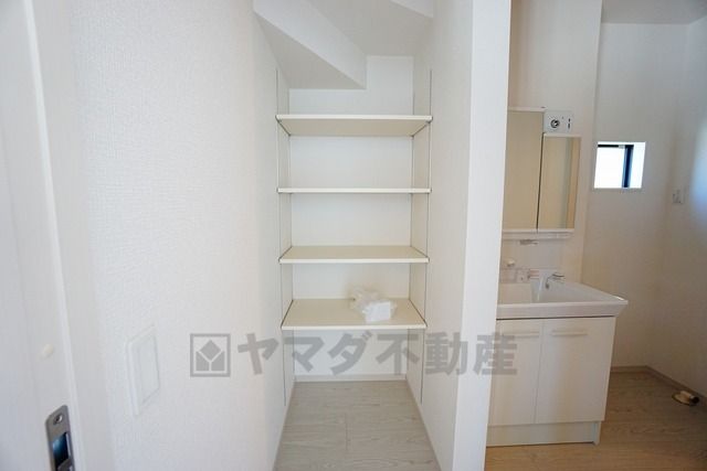 便利な洗面室収納。散らかりがちなバスタオルや清掃用品、化粧品や予備のシャンプー等もきれいに整頓できますね。
