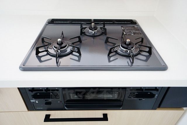 同時にたくさんの料理が調理できる3口コンロ。長時間熱を通しておきたい煮込み料理を作りながら、炒め物など同時進行で進められます。