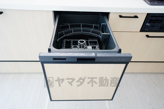 食事の後の手間を解消する食器洗い乾燥機付。冬場の洗い物で手荒れの悩みもなくなります。手洗いよりも節約できて便利。