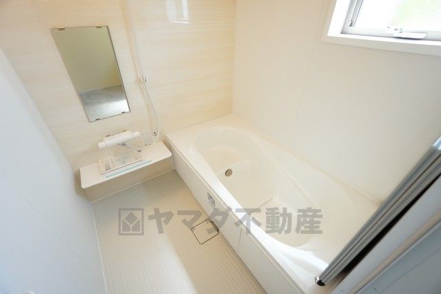 1日の疲れを癒すくつろぎのバスルーム。足を伸ばしてもゆったりと入れるサイズです。お子様と一緒にお風呂に入っても狭くないですね^^