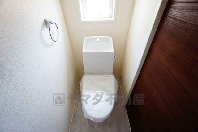 温水洗浄機付トイレです。節水機能もあるので、安心して使えますね。もちろん、1階2階の2ヶ所にトイレがあるので、忙しい朝にもゆとりができますね。
