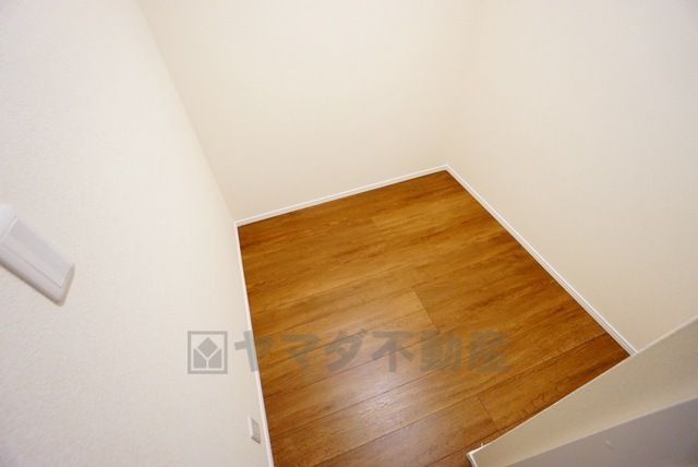 2階トイレの横に収納スペースがあります。普段使わないものなどを収納するのに重宝しますね。
